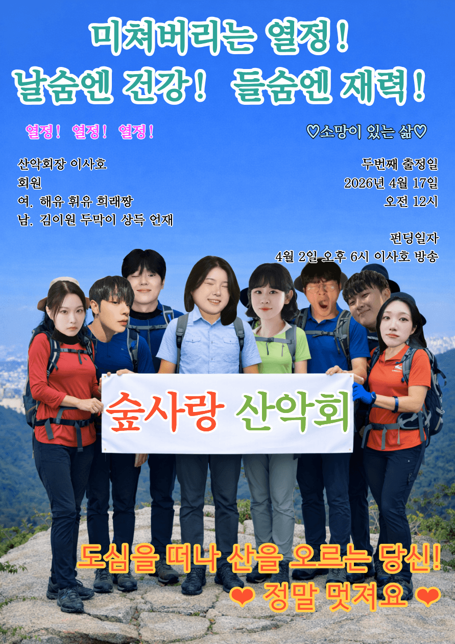 숲사랑 산악회 6시 30분에 켜도록 하겠습니다!