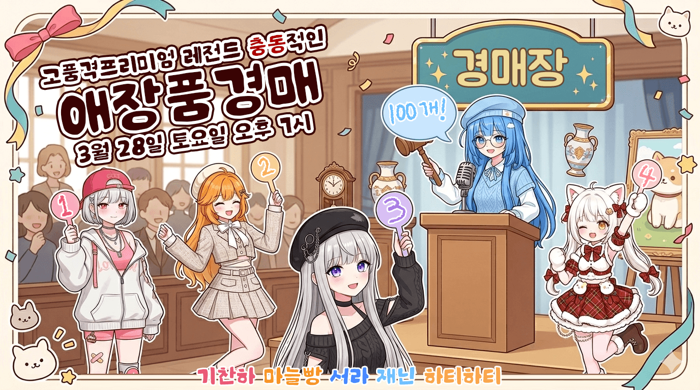 오늘은............ 진짜..... 할 말이 많은데.....1시 반에 오겠습니다......... 그리고 오늘 애장품 경매 6시로 변경되었습니다엄청난 물건들 많으니 많이 와주세여... 오늘도 건강하고 행복한 하루
