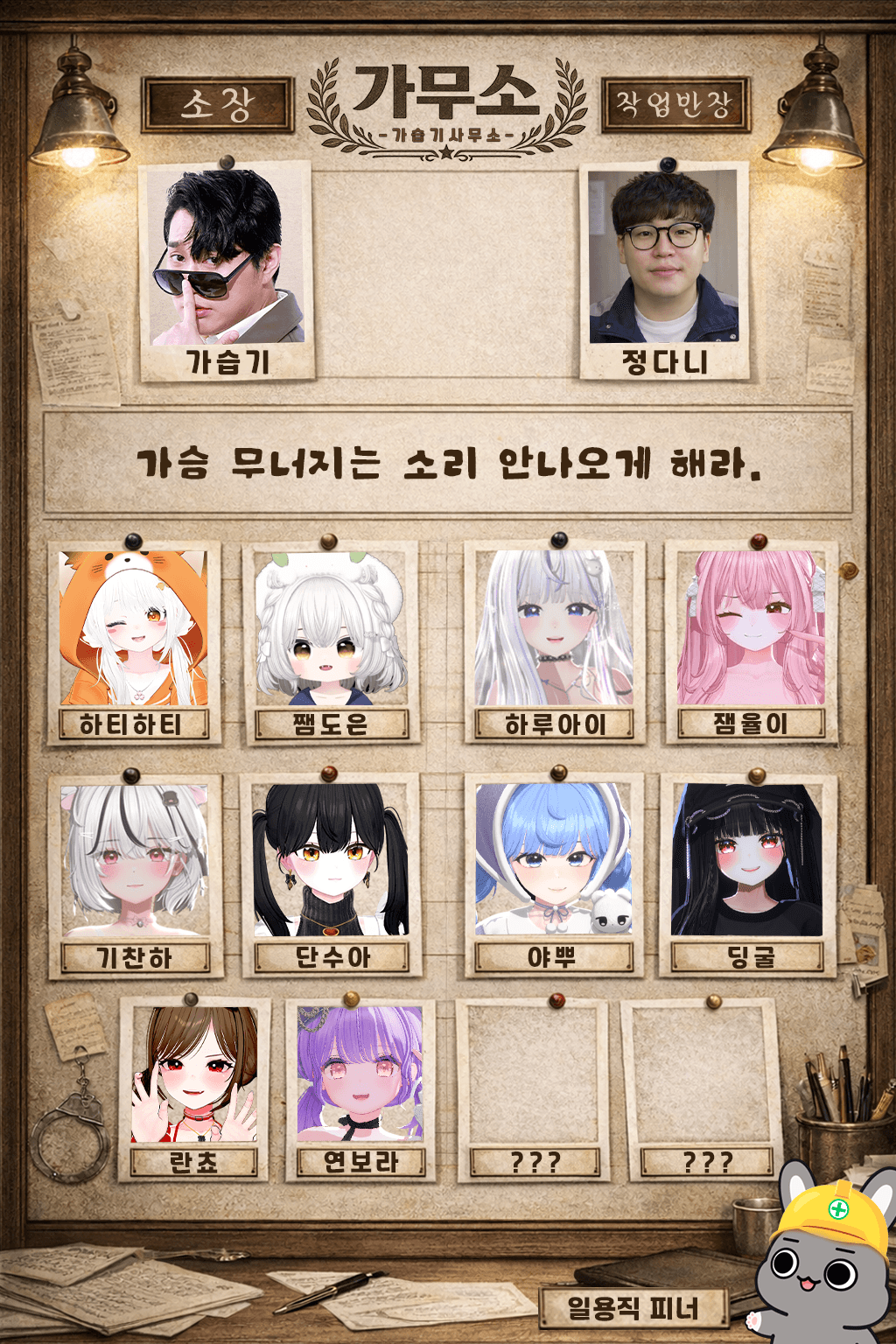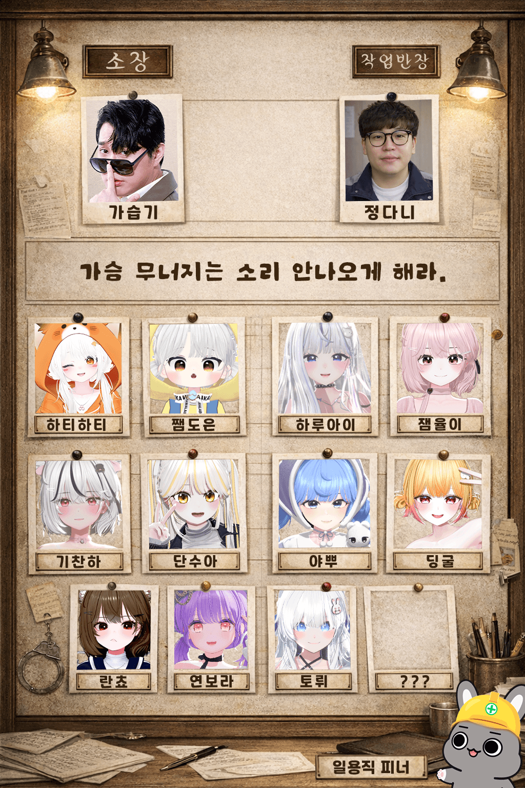 남은 멤버는 저도 누가 될지 모르겠습니다... 그럼 전 내일 낮에 공지 쓰고 올게요!
