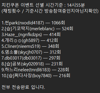 아까 제이팝 치킨 이벤트 당첨자 공지입니다