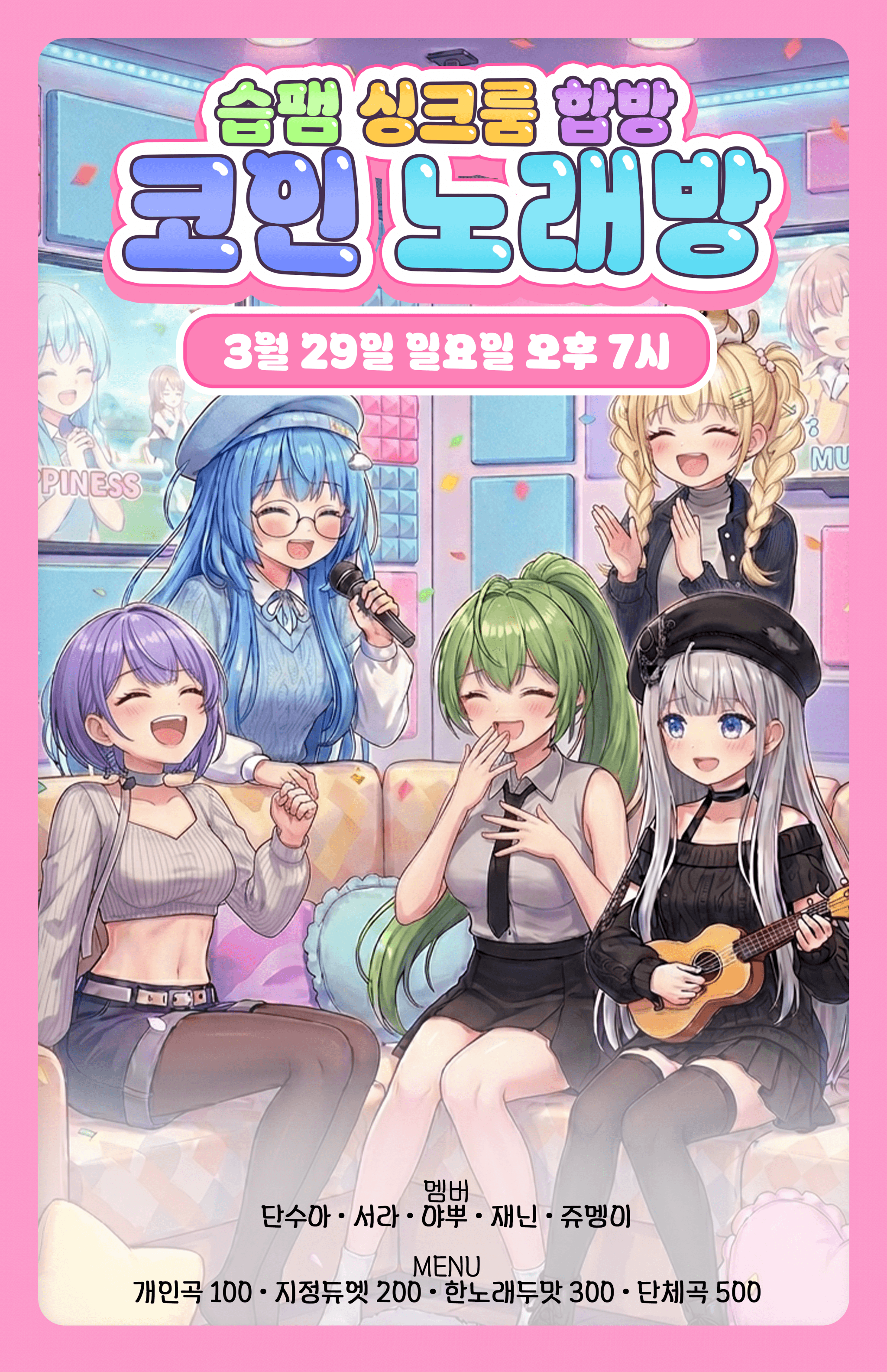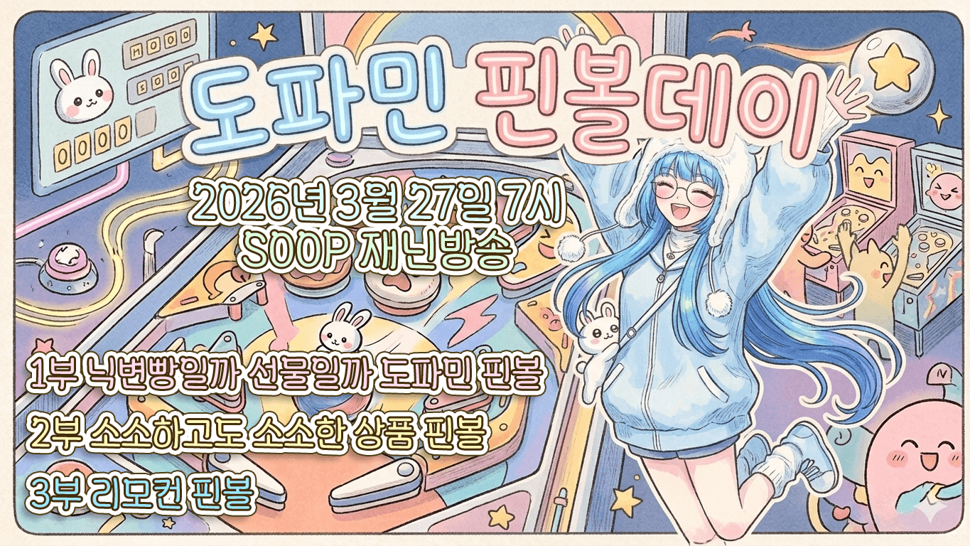 금 토 일 매일 7시부터 시작되는777 컨텐츠 열차 출발합니다놀러오세용! 3월 27일 오후 7시 재닌 도파민 핀볼데이 3월 28일 오후 7시 습팸유닛 애장품 경매기찬하 마늘빵 서라 재닌 하티하티3월 29일 오후 7시 습팸유닛 싱크룸 합방단수아 서라 야뿌 재닌 쥬멩이 많관부!!!!